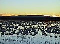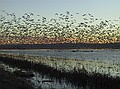 Wildlife Reserve at Bosque del Apache. We were in time to see thousands of snow geese take flight at sunrise. It takes only a couple of seconds. The sandhill cranes and some ducks return when it's clear that there's no actual threat.